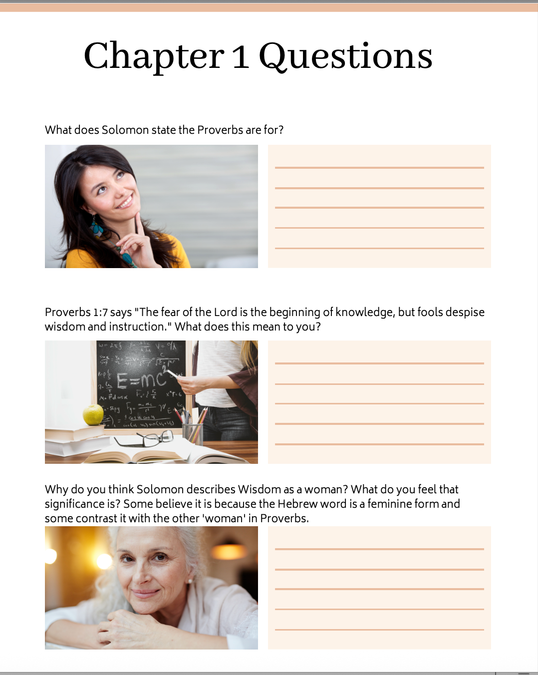 Each day, you’ll delve into a new chapter of Proverbs, exploring its wisdom, insights, and practical advice. With thought-provoking questions, journaling prompts, and space for personal reflection, this workbook provides a structured yet flexible approach to engage with Proverbs on a deeper level.