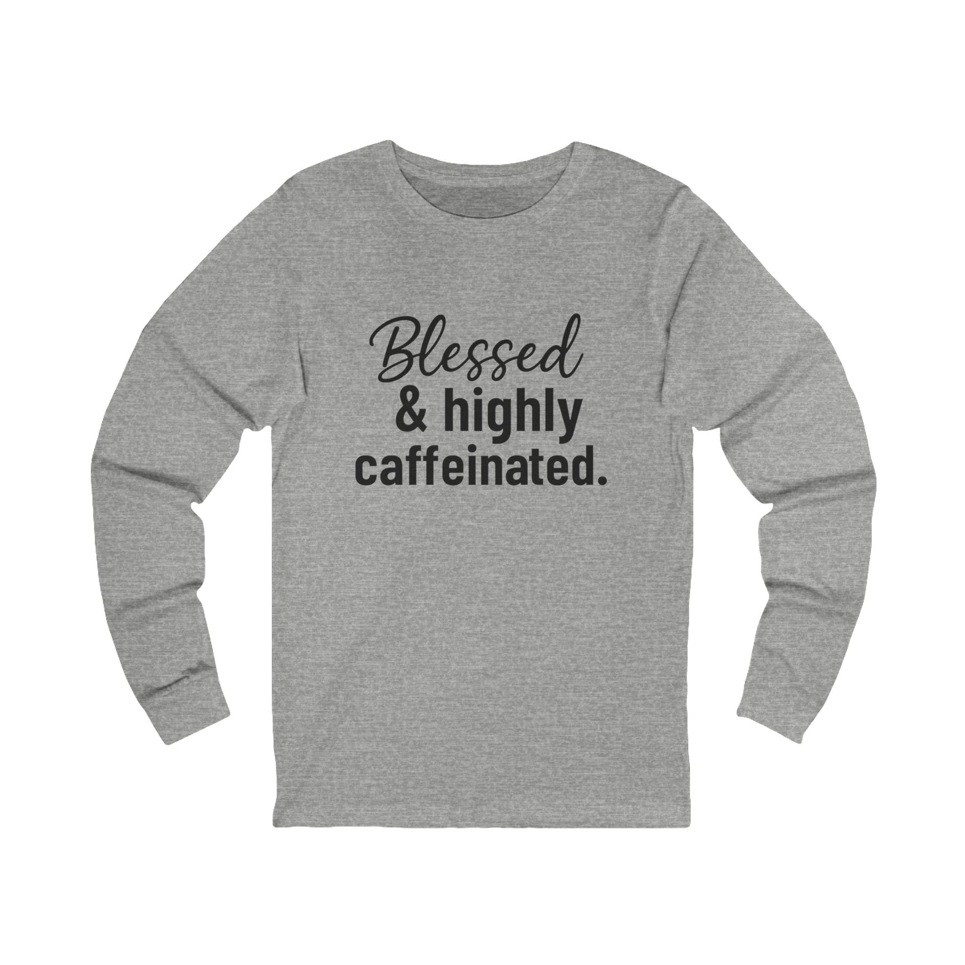 Blessed & Highly Caffeinated Long Sleeve Tee | Coffee Lover Gift, Relaxed Fit Shirt, Unisex Apparel, Casual Wear, Perfect for Thanksgiving