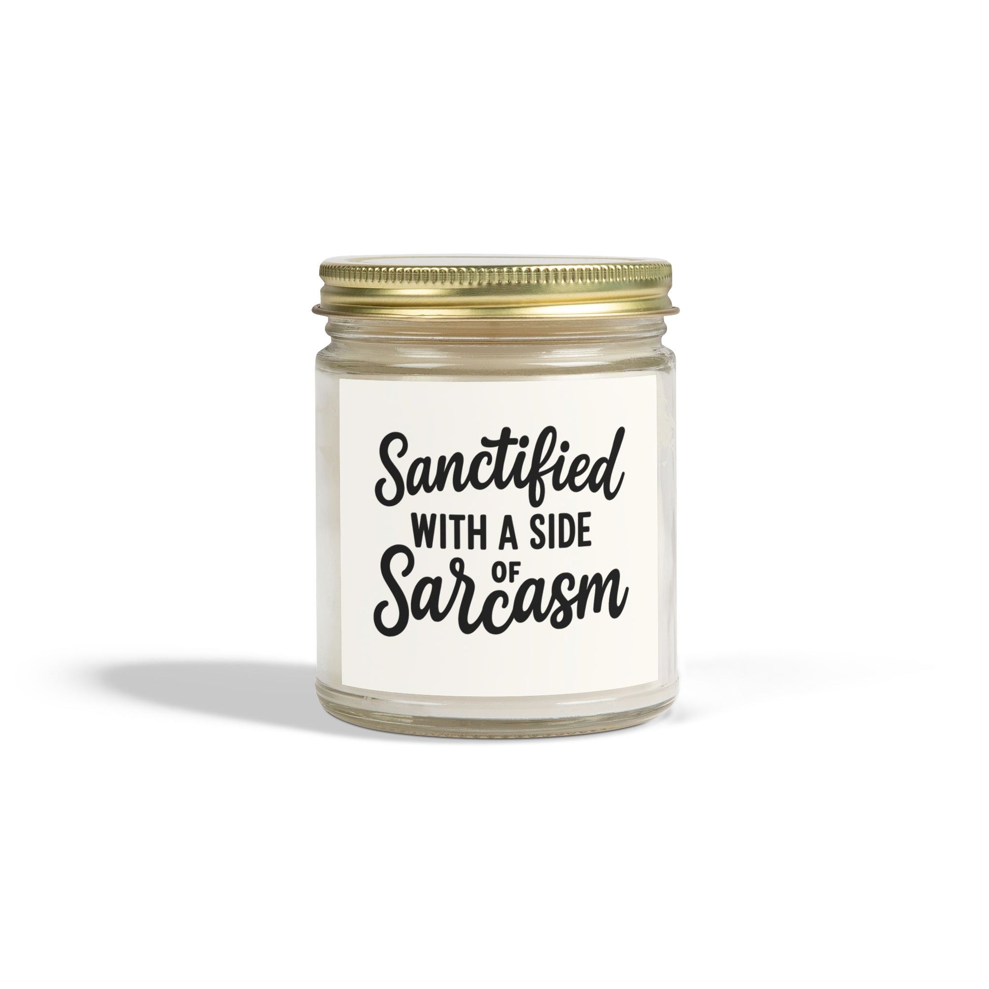 Sanctified with a Side of Sarcasm Candle – 4oz Scented Coconut Apricot Wax, Funny Christian Gift, Faith-Based Home Decor