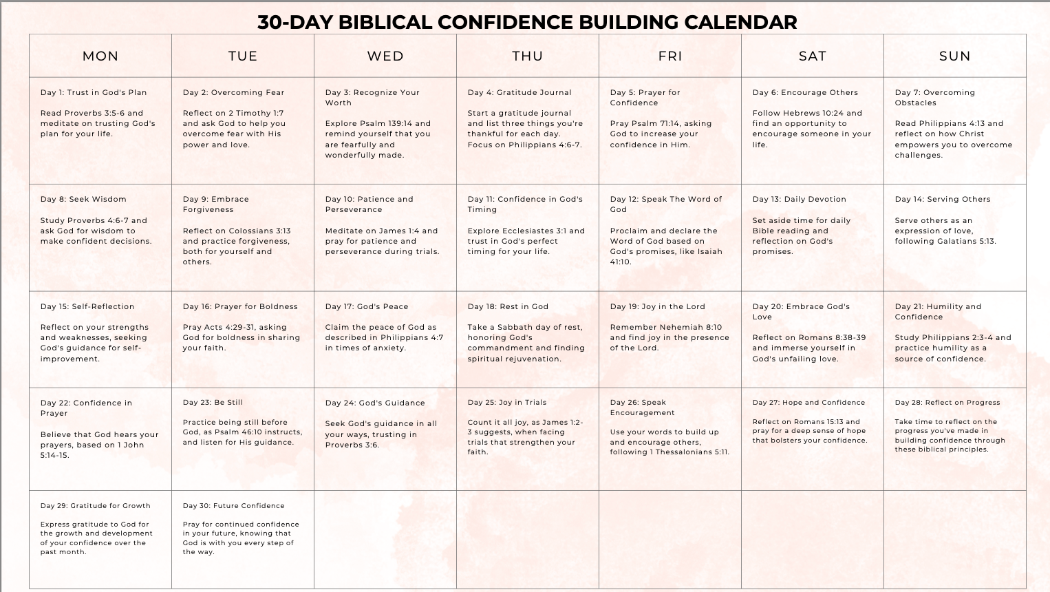 Step into God-given confidence with the Cultivating Confidence 30-Day Devotional Journey—a spiritually enriching resource designed to help women strengthen their identity in Christ. This beautifully crafted devotional and journal set empowers you to break free from fear, doubt, and insecurity as you root your self-worth in biblical truth.