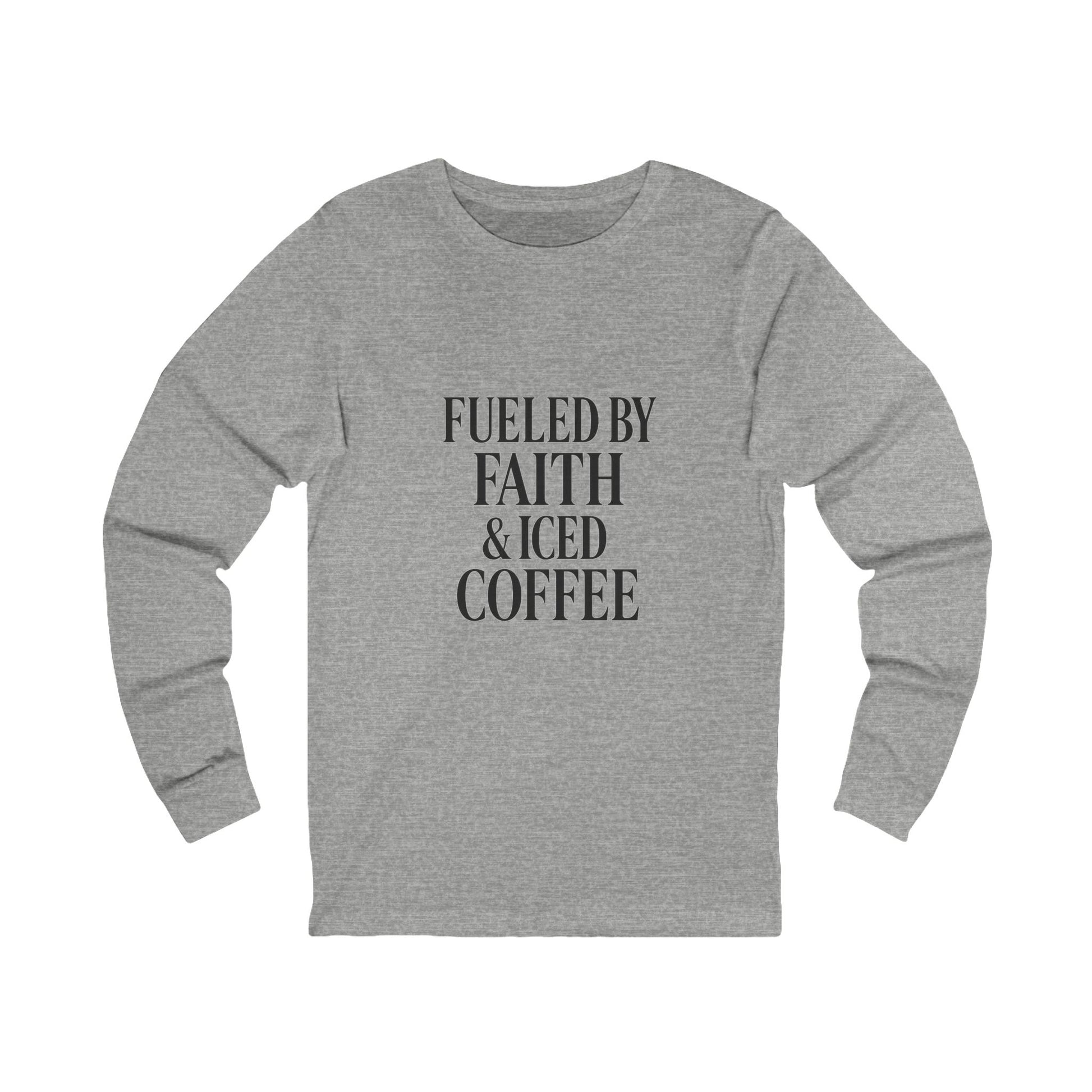 Fueled by Faith and Iced Coffee™ Long Sleeve T-Shirt – Christian Shirt for Women, Coffee Lovers & Faith-Fueled Friends