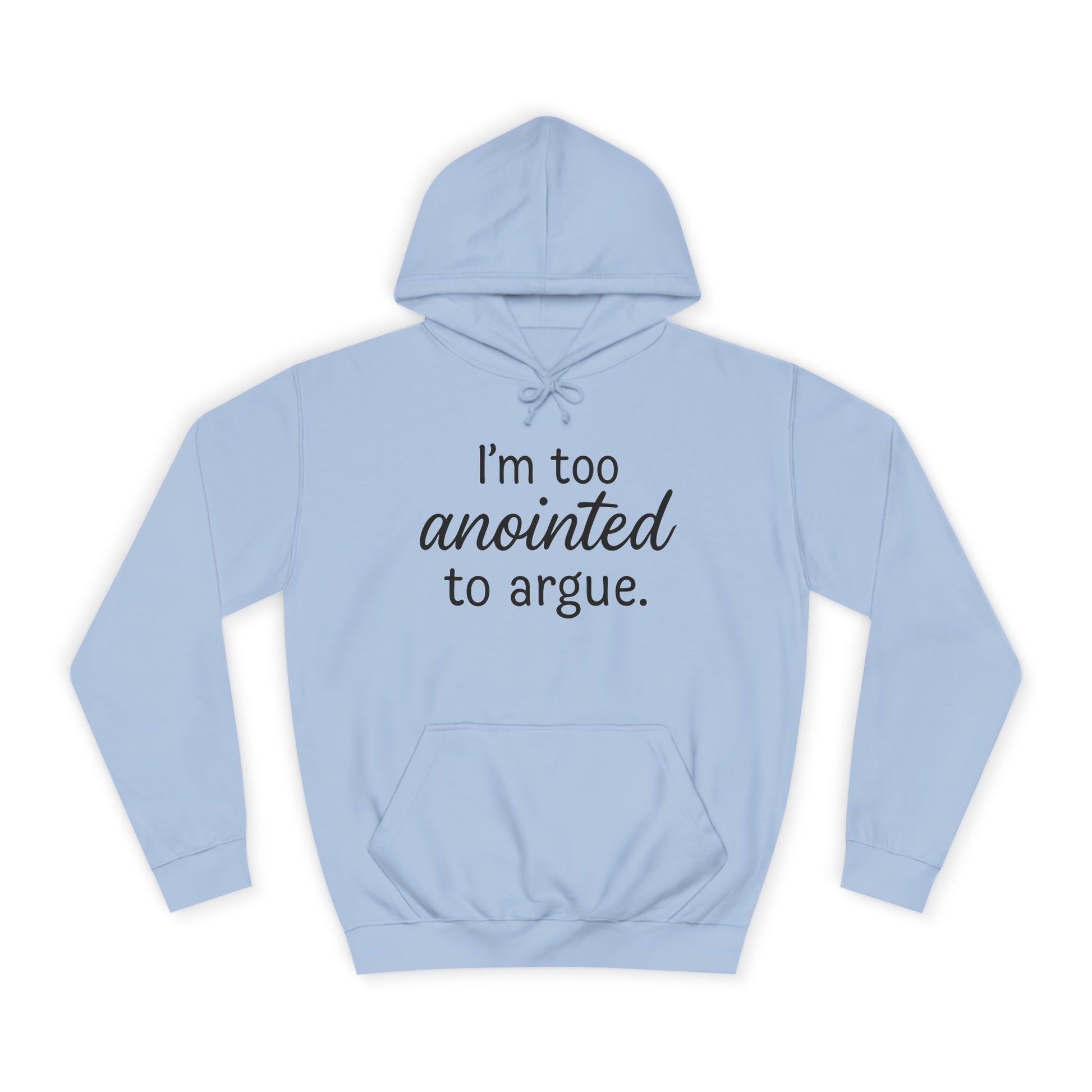 “I’m Too Anointed To Argue” Unisex Hoodie – Bold Black Lettering | Christian Humor Sweatshirt for Students & Everyday Saints