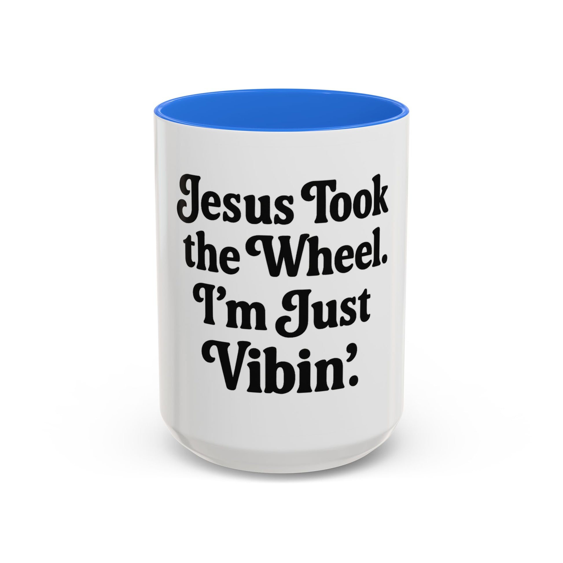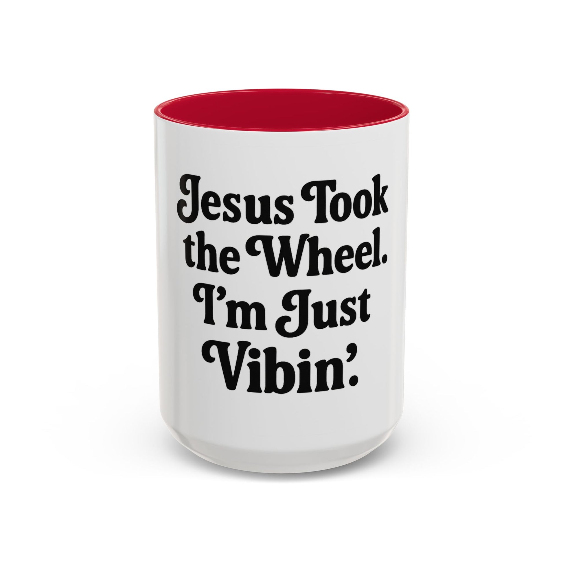 "Jesus Took the Wheel. I'm Just Vibin." Coffee Mug – Funny Faith-Based Mug for Relaxed Mornings & Spiritual Sass