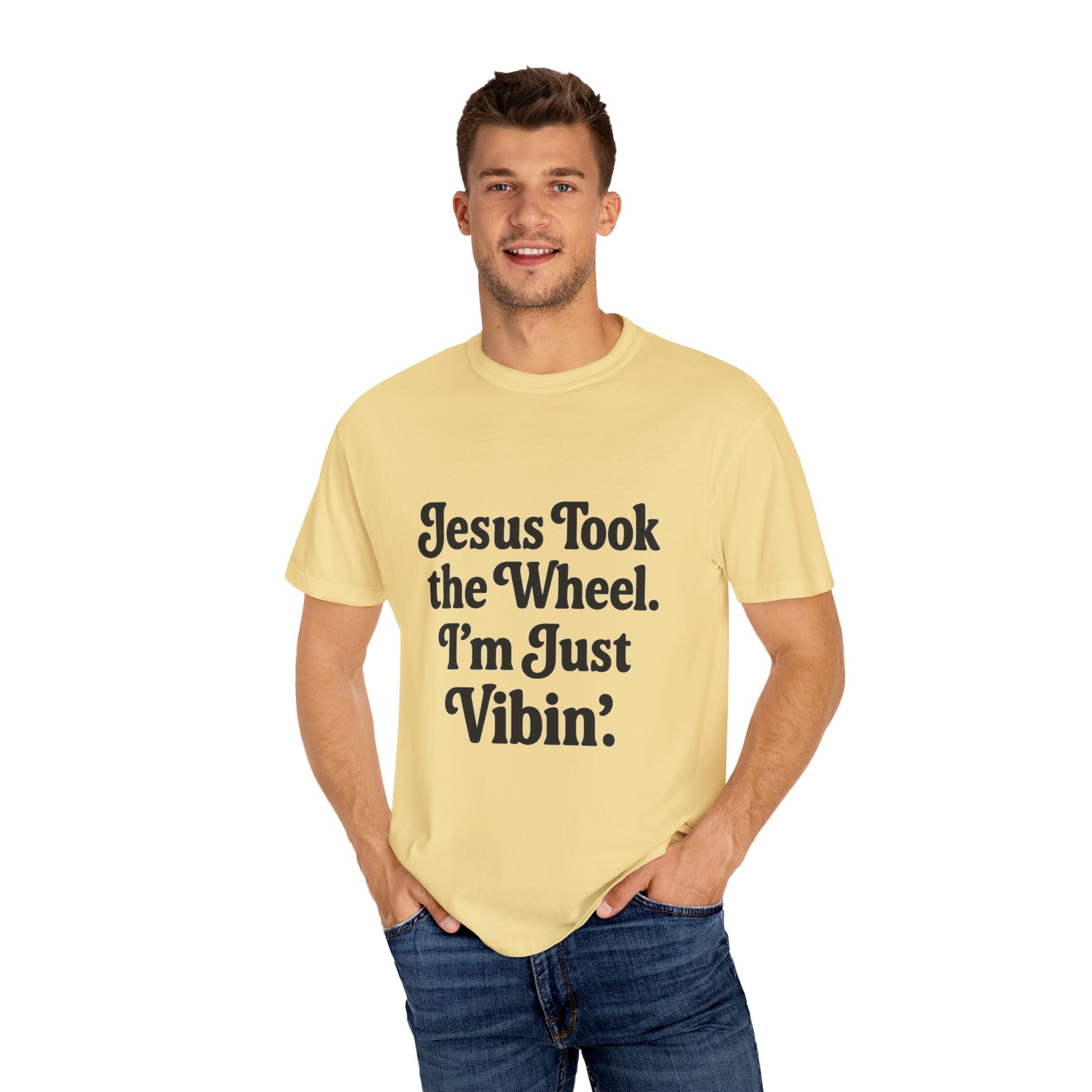 "Jesus Took the Wheel. I'm Just Vibin." T-Shirt – Funny Christian Tee for Faith-Filled Chill Vibes & Everyday Style