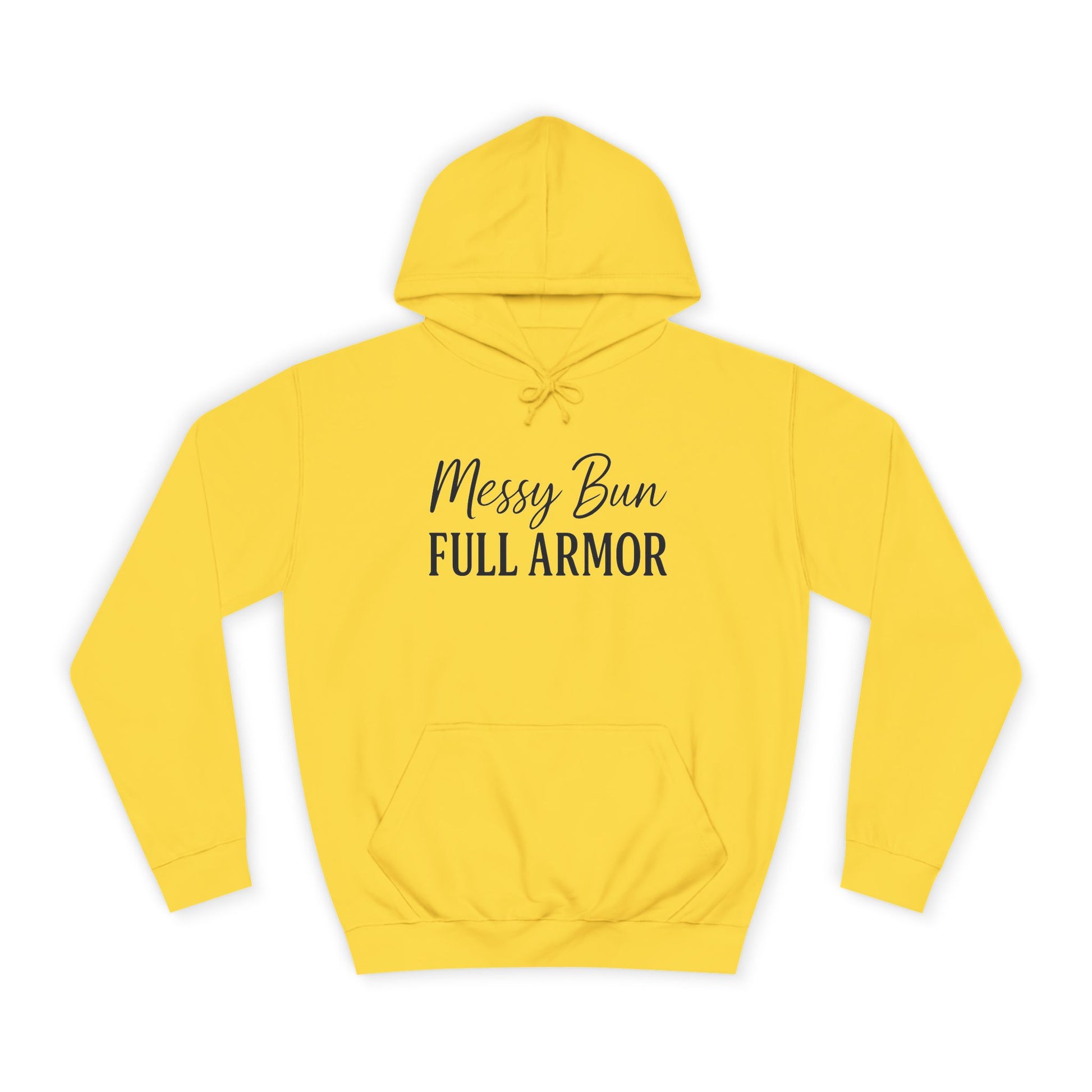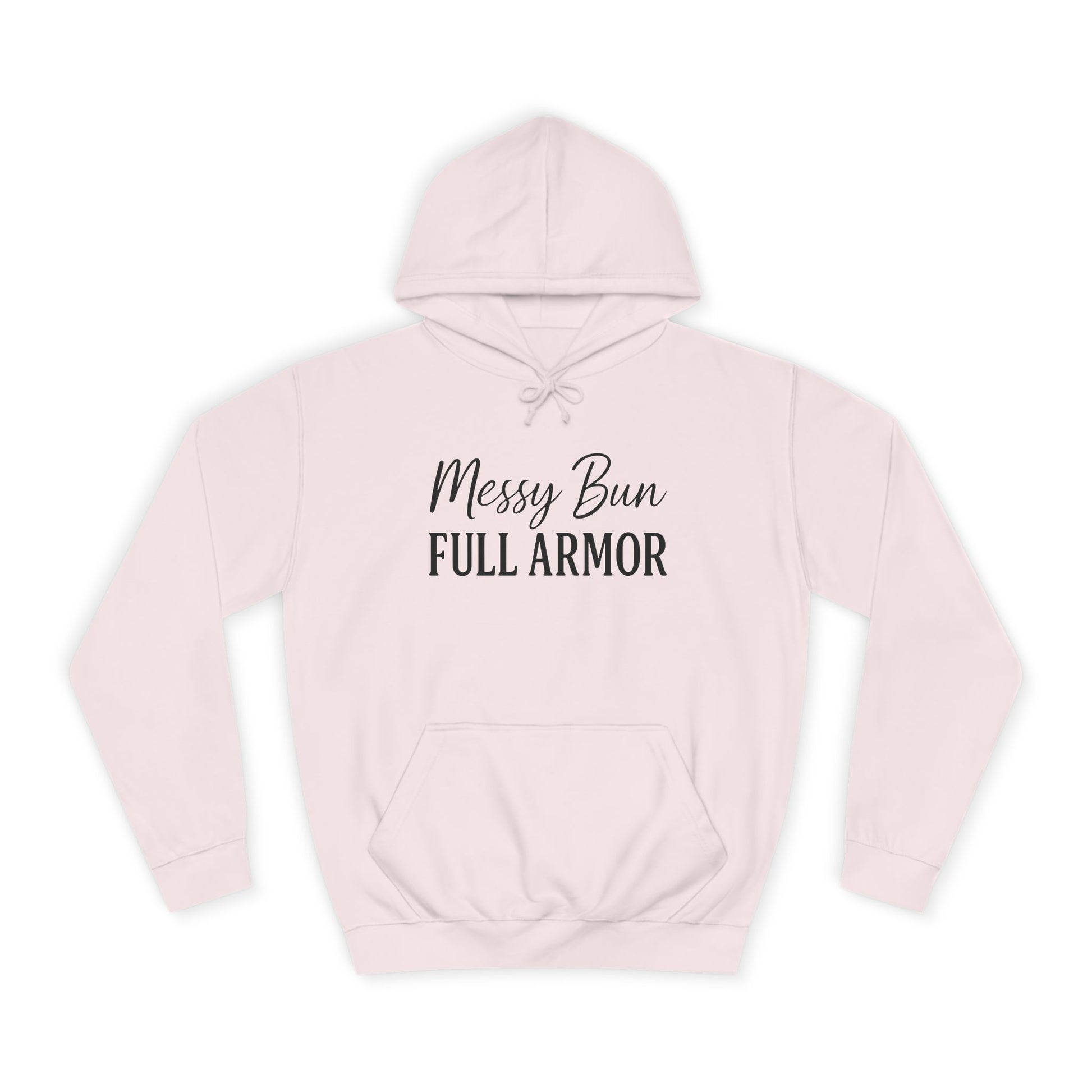 "Messy Bun. Full Armor." Unisex Hoodie – Bold Christian Hoodie for Faith-Filled Women on a Mission