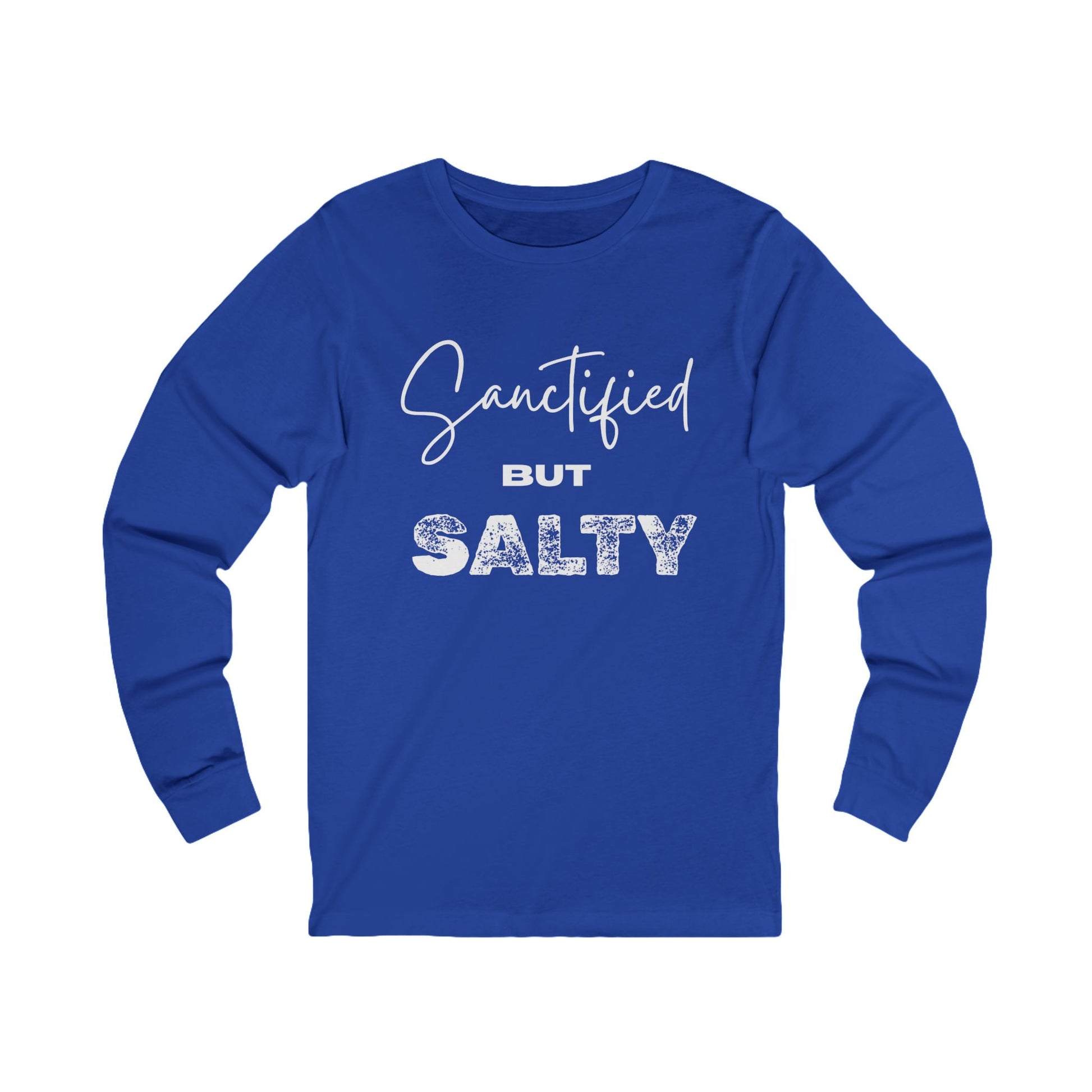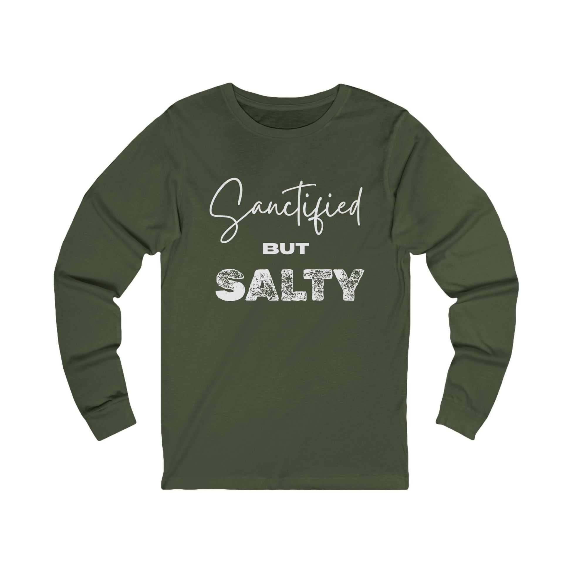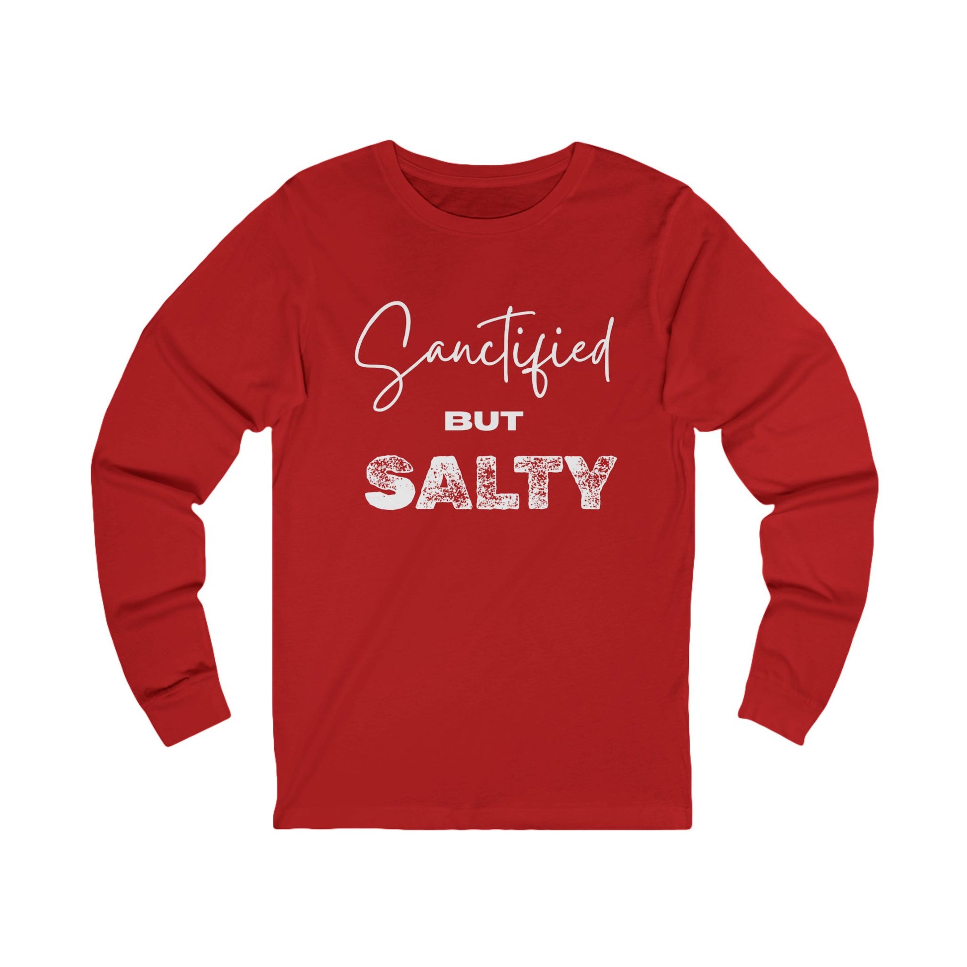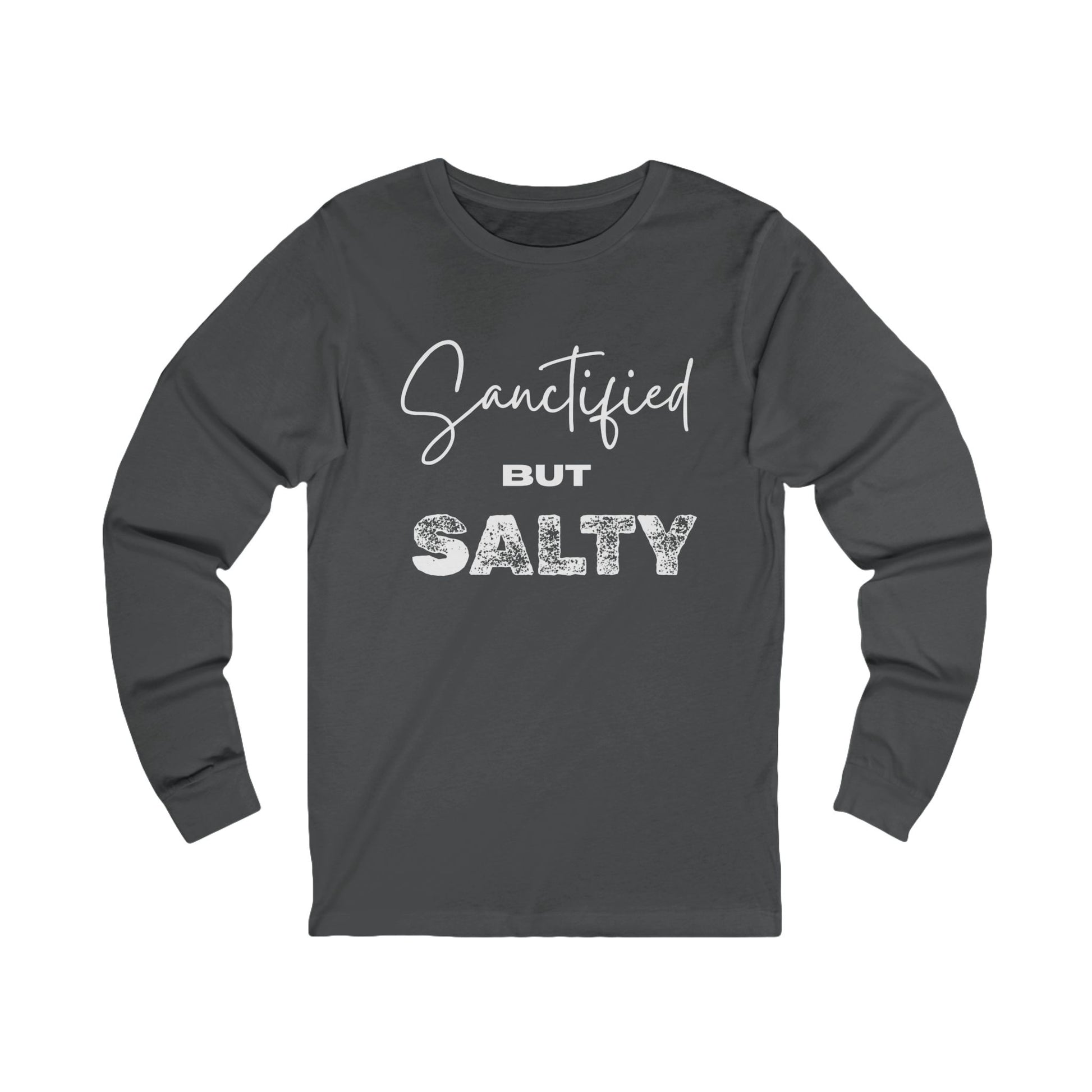 Sanctified But Salty Long Sleeve Tee, Unisex Jersey Tee, Faith-Based Apparel, Humorous Shirt, Casual Wear, Gifts for Friends