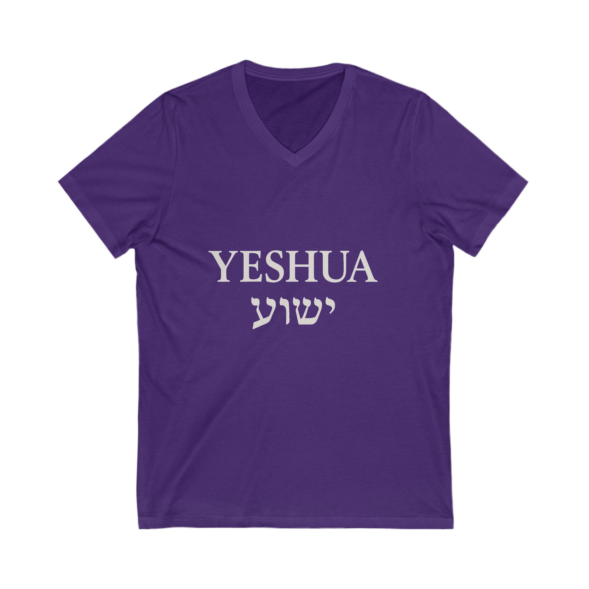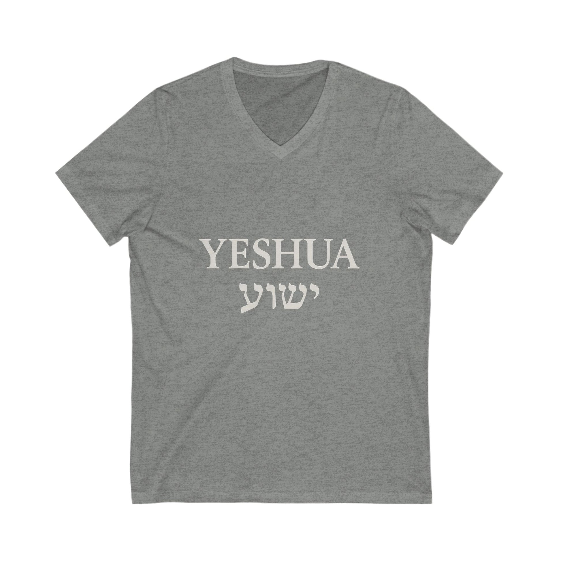 Yeshua / יֵשׁוּעַ V‑Neck Tee – White Lettering | Faith-Filled Unisex Apparel