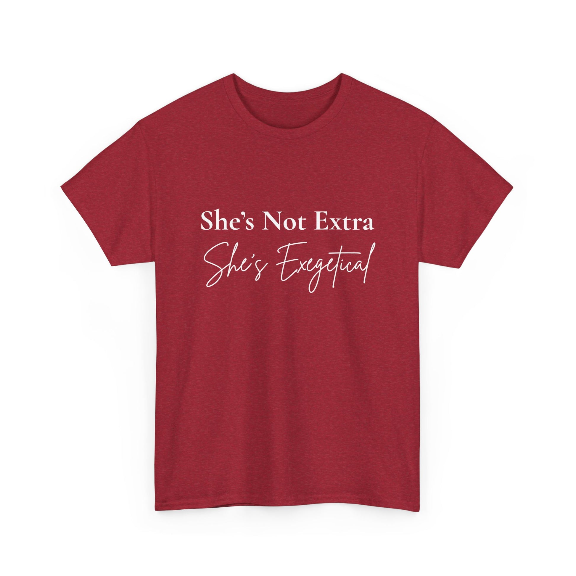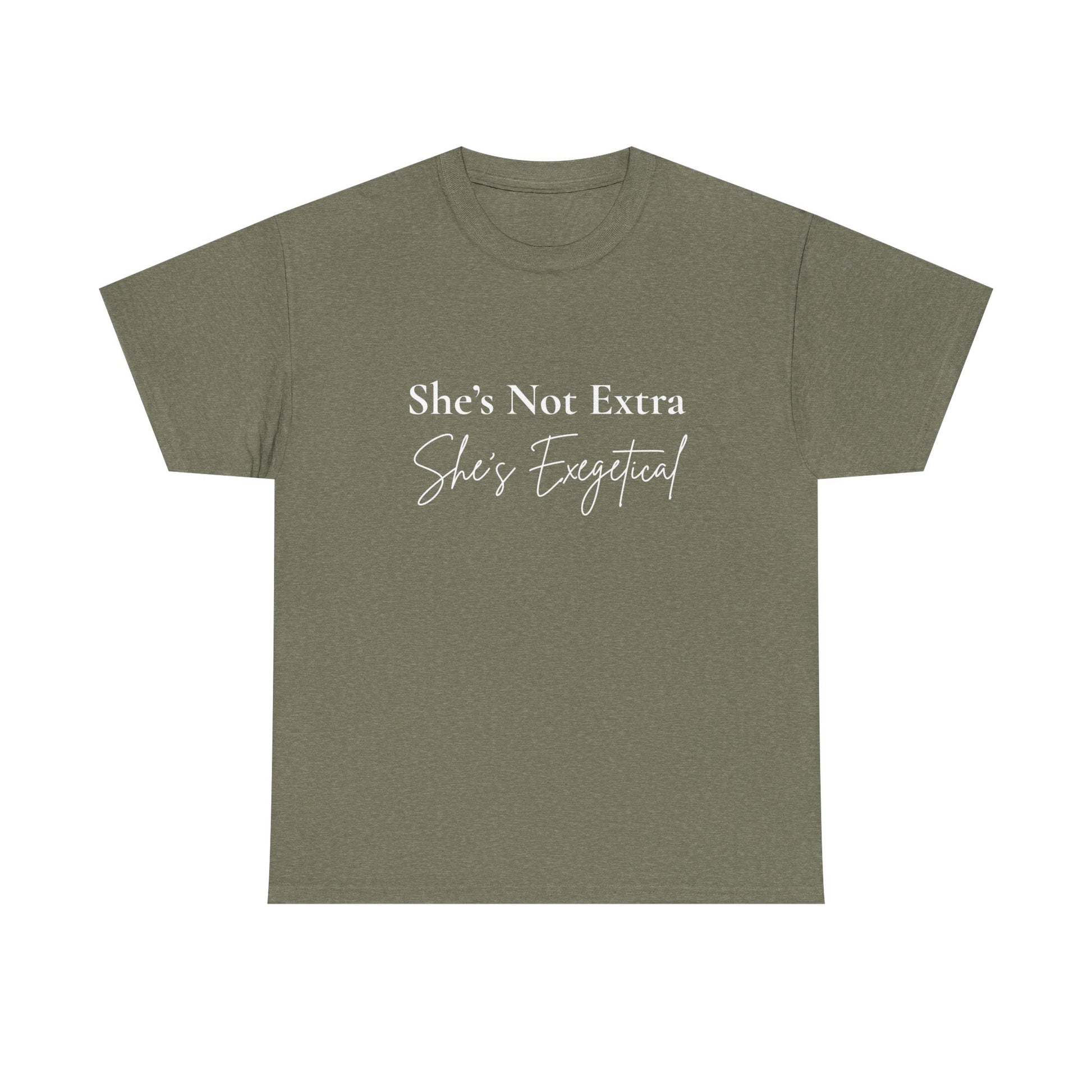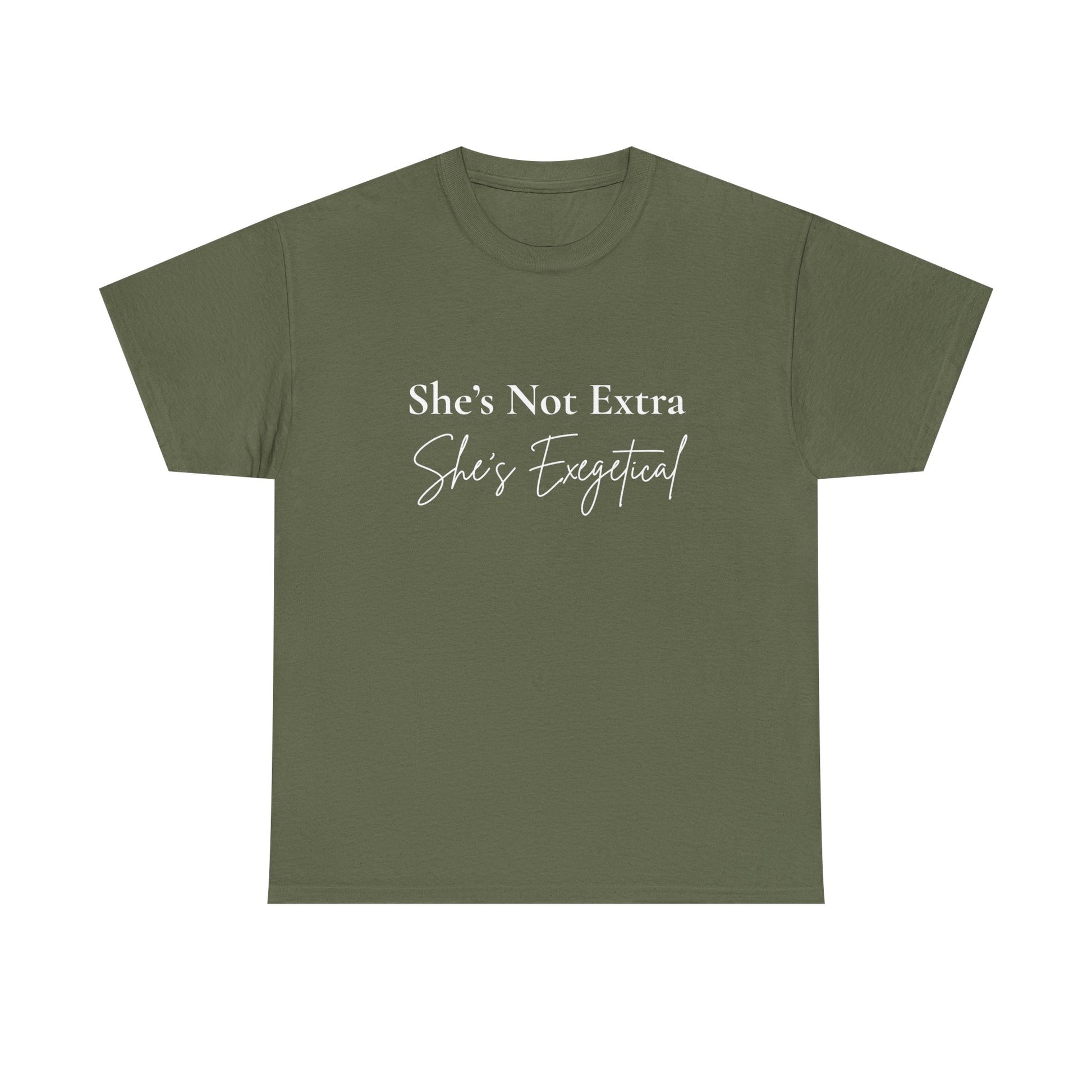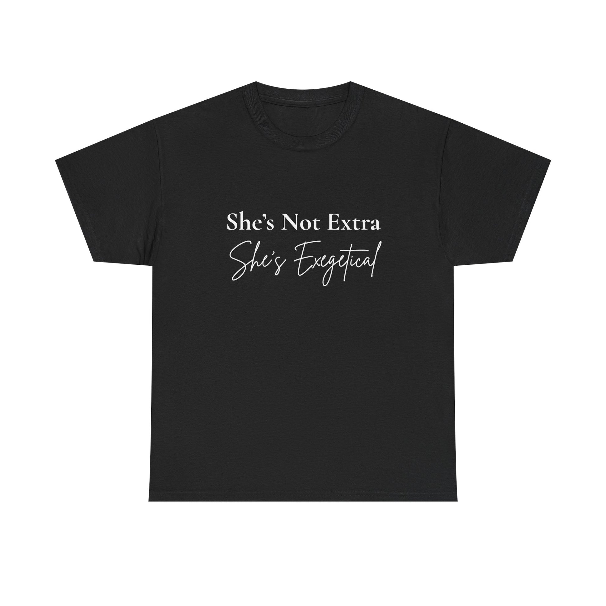 Who needs drama when you’ve got doctrine? This “She’s Not Extra. She’s Exegetical.” tee is for the woman who doesn't just vibe with Scripture—she dives into it. No fluff, just faithful exegesis, served with a side of sass.