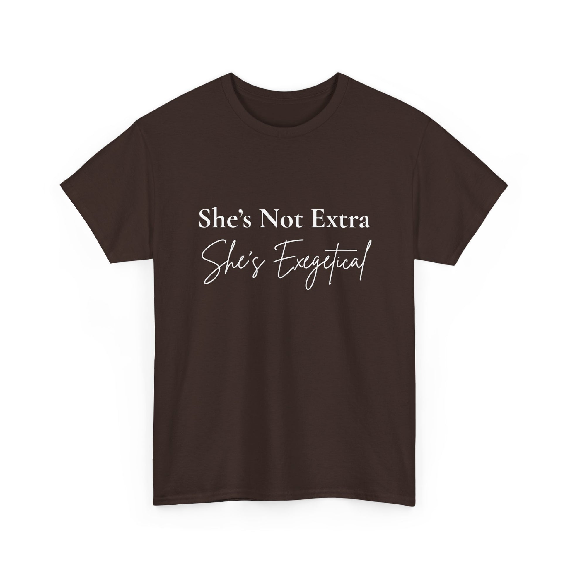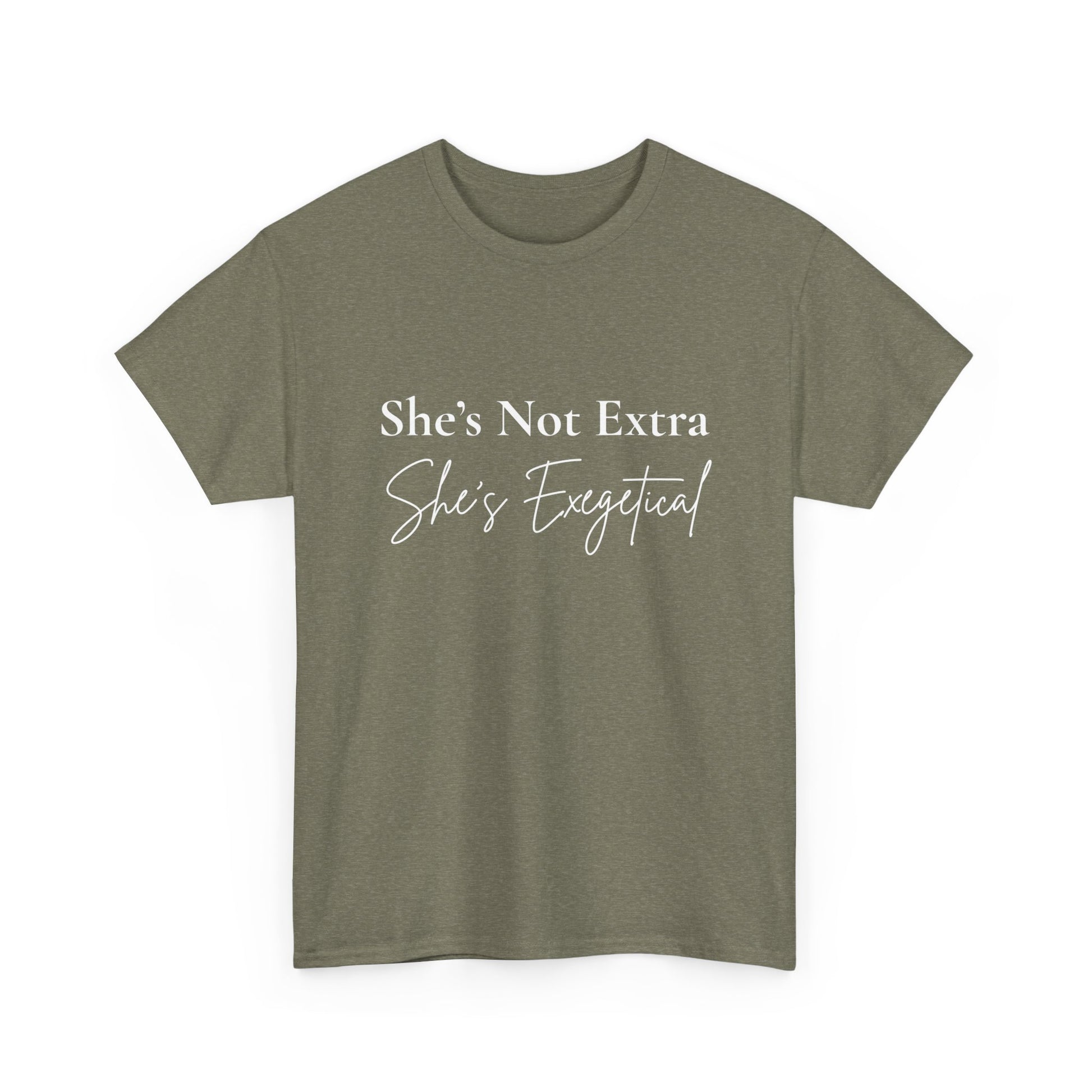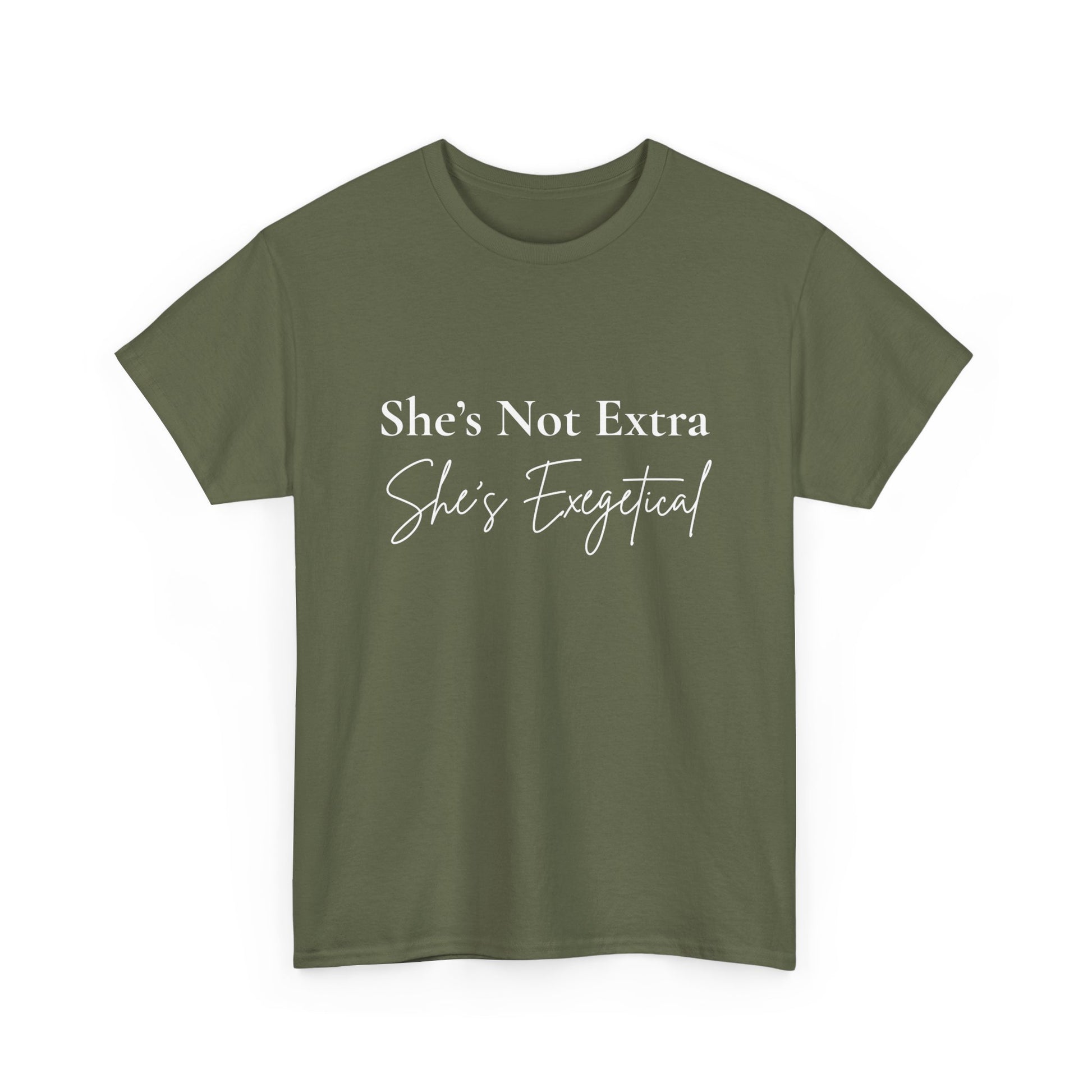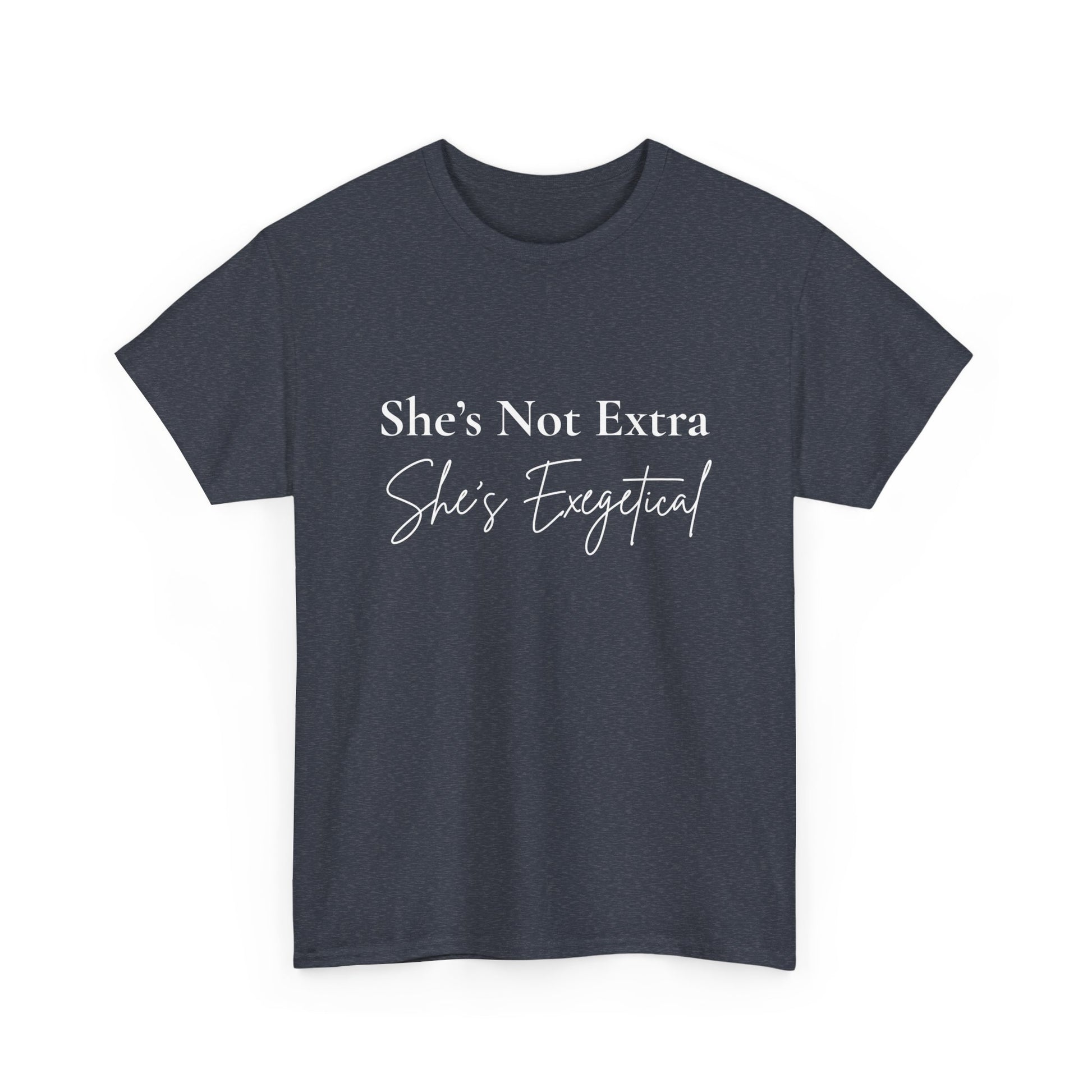 Who needs drama when you’ve got doctrine? This “She’s Not Extra. She’s Exegetical.” tee is for the woman who doesn't just vibe with Scripture—she dives into it. No fluff, just faithful exegesis, served with a side of sass.