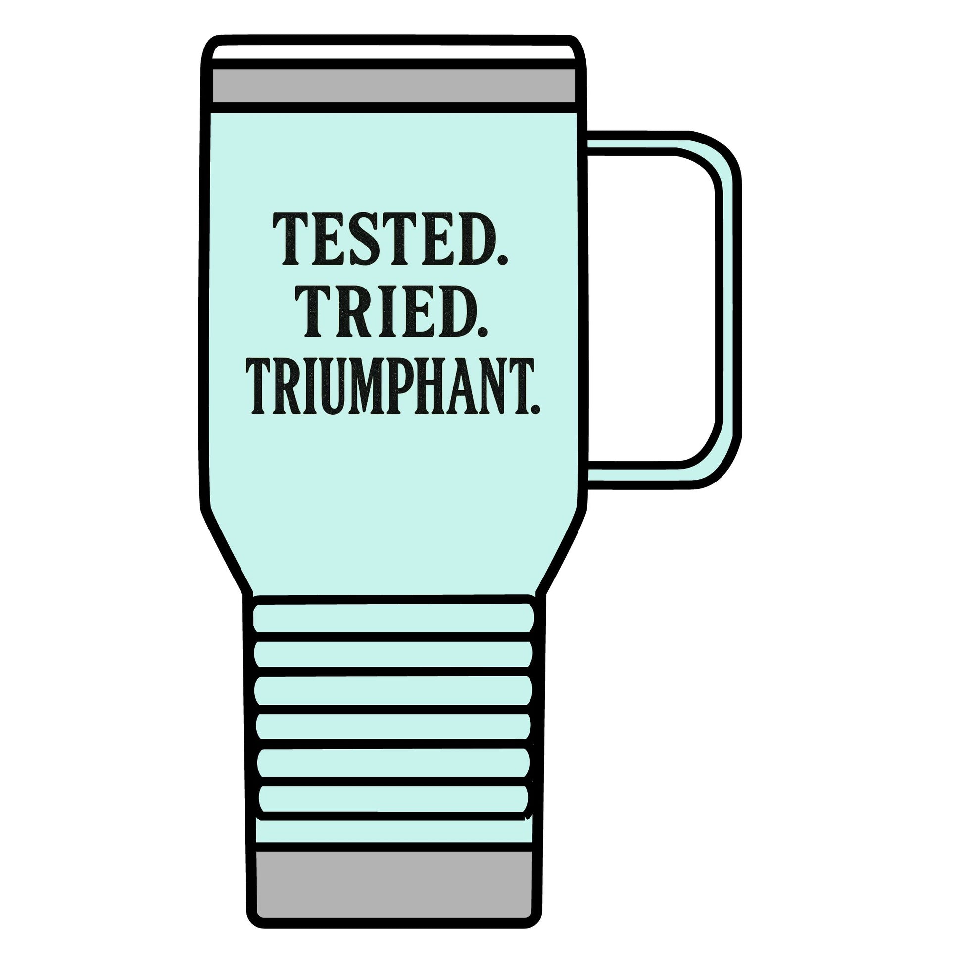 Tested. Tried. Triumphant. Travel Mug – 20oz Inspirational Stainless Steel Tumbler, Christian Gift for Women, Motivational On-the-Go Drinkware