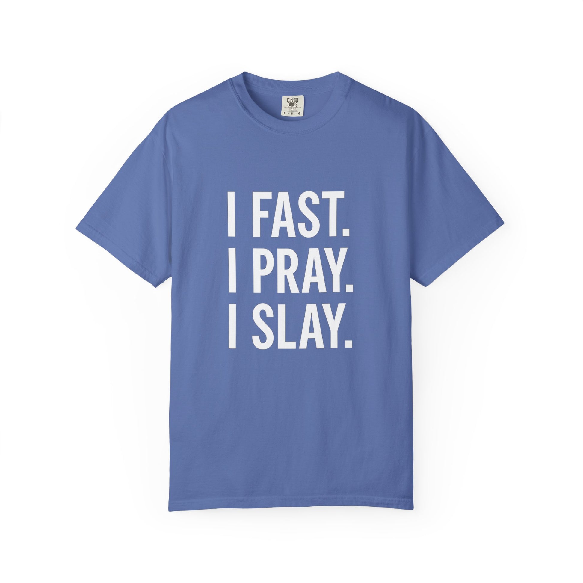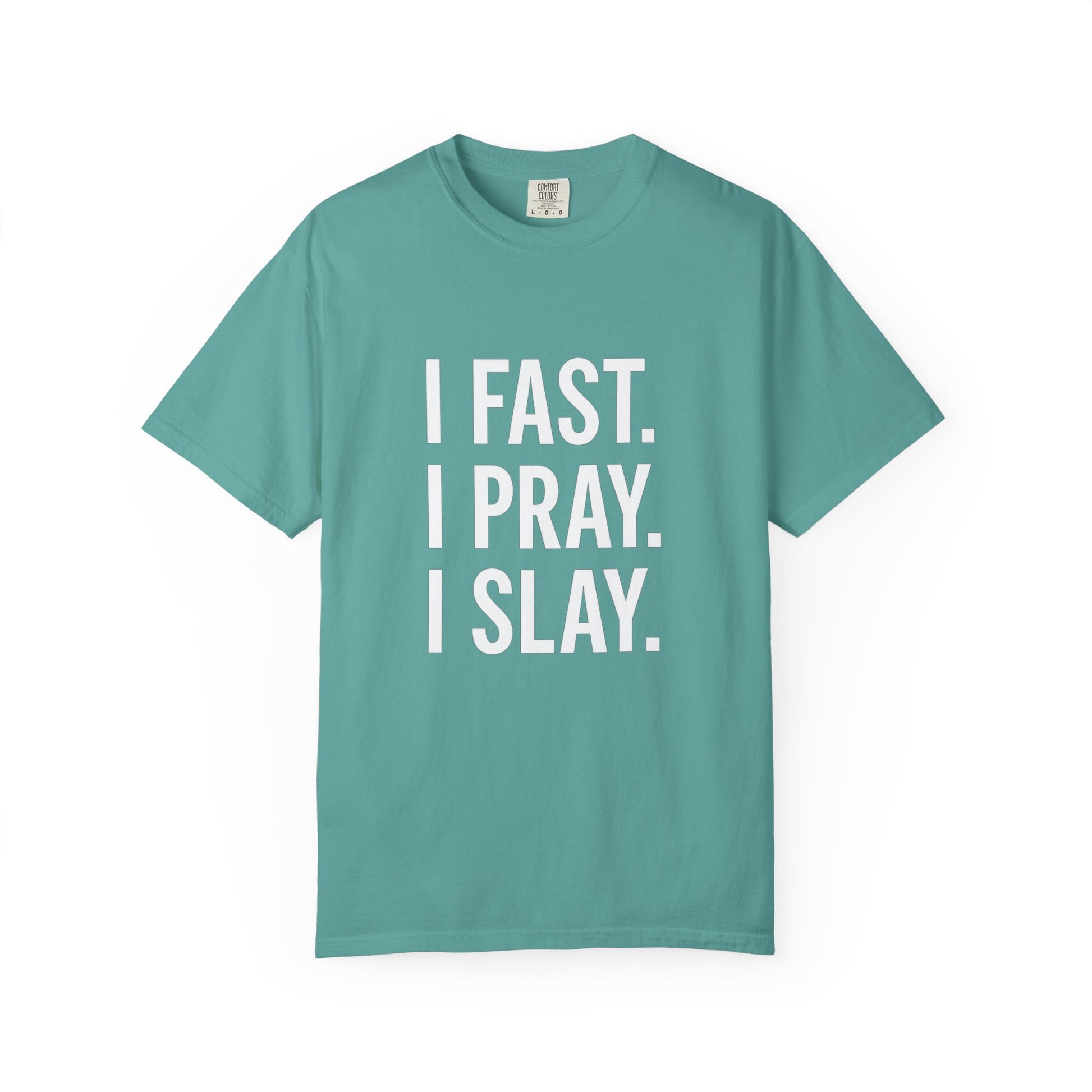 "I Fast. I Pray. I Slay." Unisex T-Shirt – White Lettering Faith Tee for Bold Believers