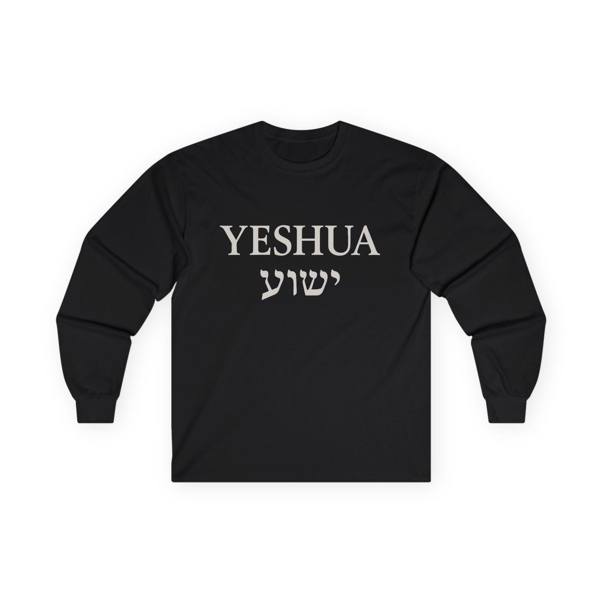 “Yeshua / יֵשׁוּעַ” Long-Sleeve Tee – Bold Faith in Hebrew + English | Unisex Spiritual Apparel